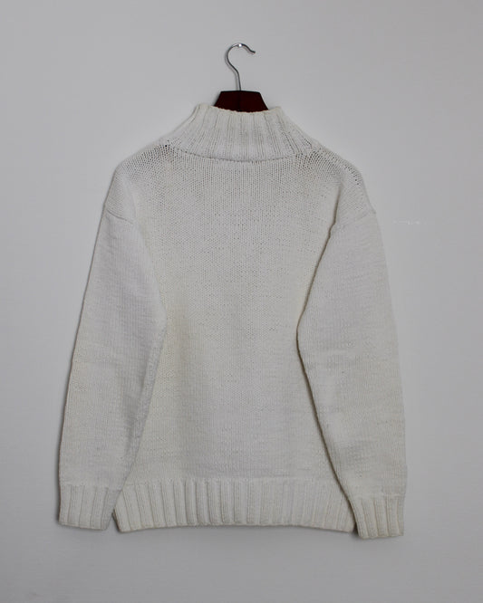 c.1990 Hand Knitted Blanc Bleu Pullover - Size S
