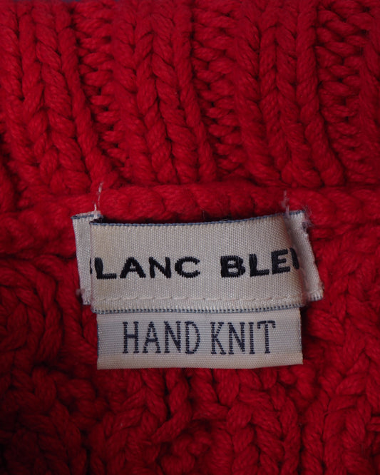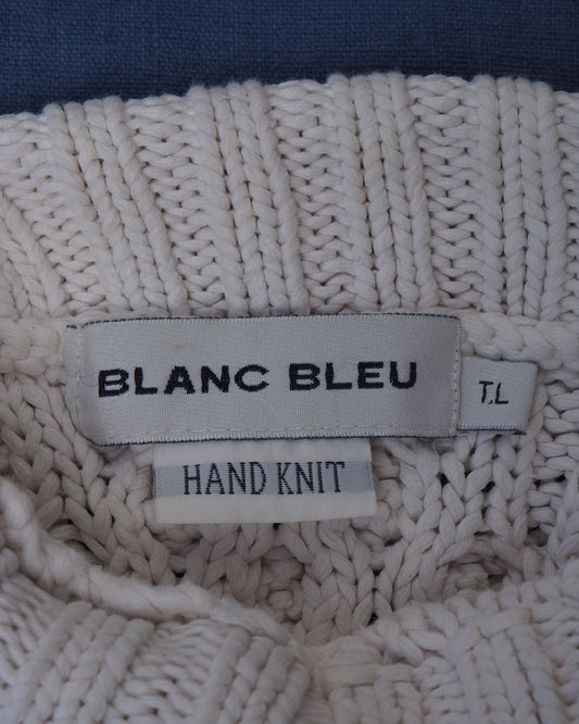 c.1990 Hand Knitted Blanc Bleu Pullover - Size L