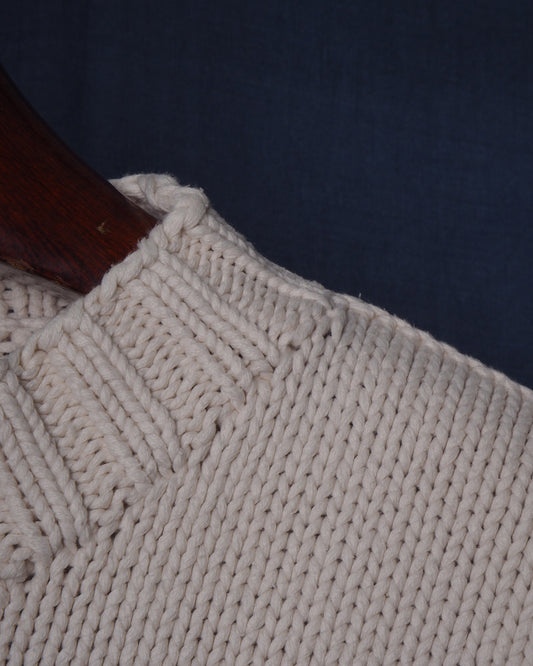 c.1990 Hand Knitted Blanc Bleu Pullover - Size M