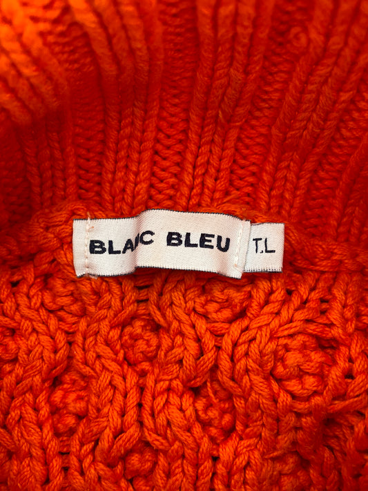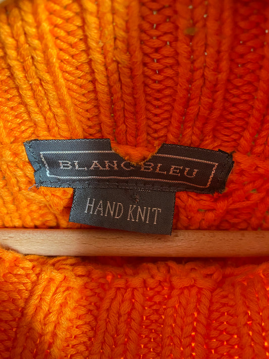 c.1990 Orange Handknitted White Blue pullover
