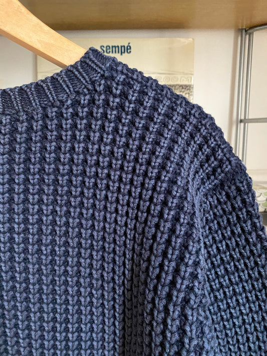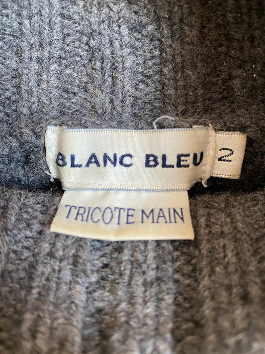 c.1990 Wool Handknitted White Blue pullover