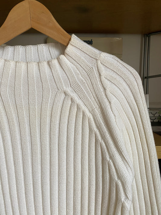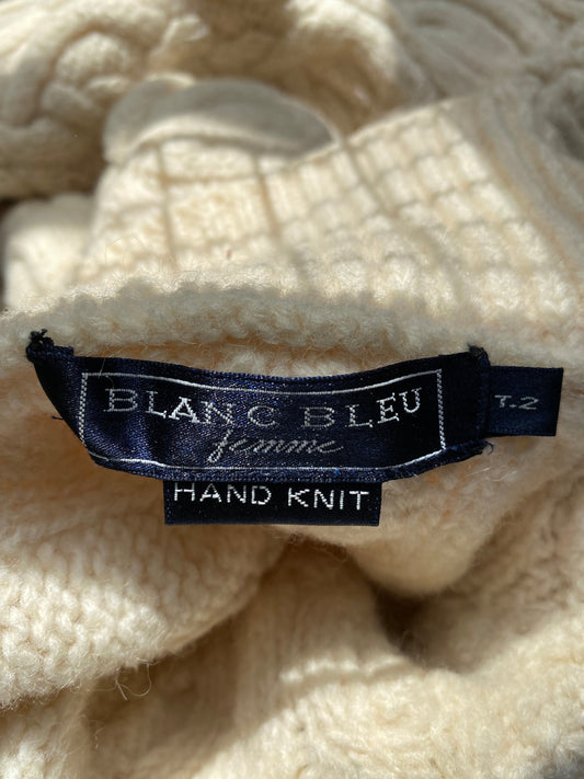 c.1990 Wool Handknitted White Blue pullover - Cream