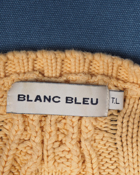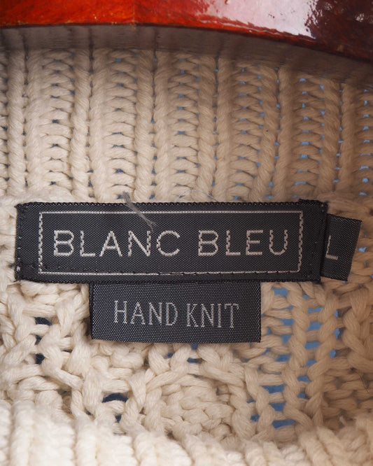 c.1980 Hand Knitted Blanc Bleu Pullover - Size L