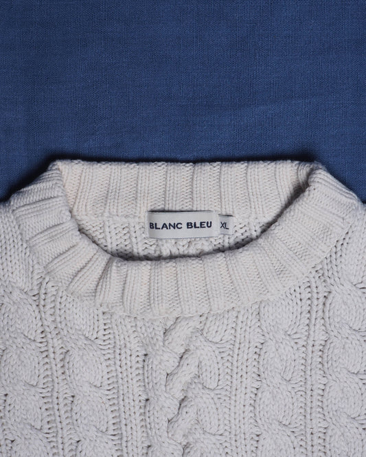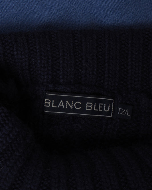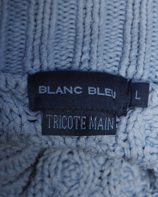 c.1980 Hand Knitted Blanc Bleu Wool Pullover - Size L